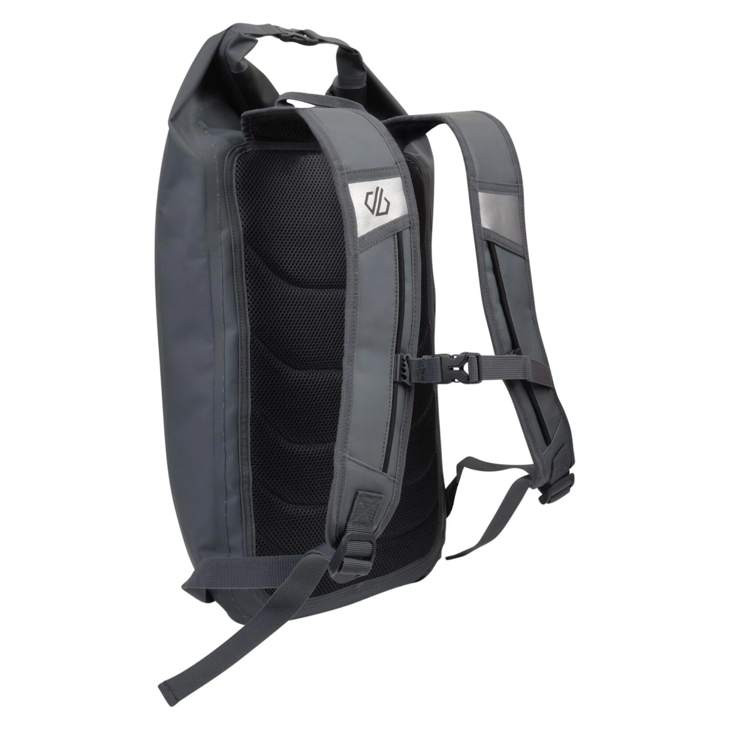 Waterproof backpack with a roll top closure. Made for wet weather commuting. Tough-wearing tarpaulin construction with heat sealed seams to keep the water out. 30 -litre capacity. Adjustable, padded shoulder pads cushion and protect. Reflective detailing and bike light attachment loop.