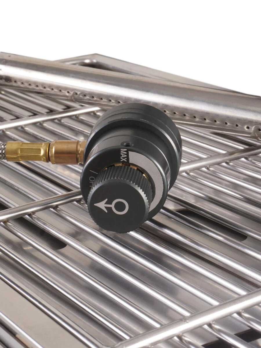 Compact when folded yet ultra-sturdy in use, the stainless steel RidgeMonkey Grilla BBQ is the ultimate portable barbecue and perfect for fishing, camping, trips to the beach and much more. This top of the range gas version features a full-length burner with fully adjustable heat & piezo ignition along with a removable stainless steel side table, perfect for storage and preparation of your ingredients, condiments and service items. With its quick and easy to use design and included protective carry case, the space-saving Grilla BBQ will have you and your friends well fed and keen for more! The 40cm x 20cm grill area offers plenty of space for burgers, sausages, steaks, chicken, seafood, vegetables and more, with a dedicated Grilla BBQ Hotplate also available as an optional extra.