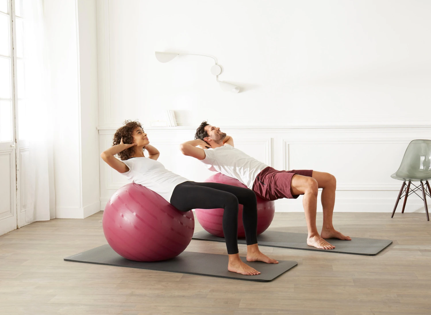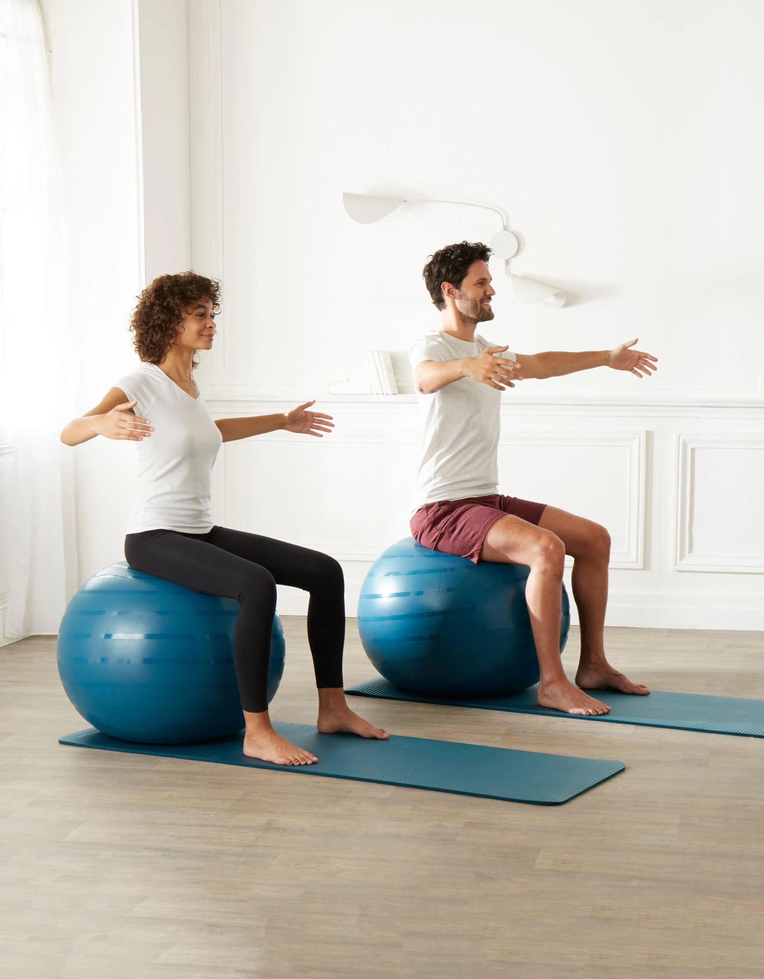 To check that the ball is correctly inflated, sit on it: your knees and hips should be level.